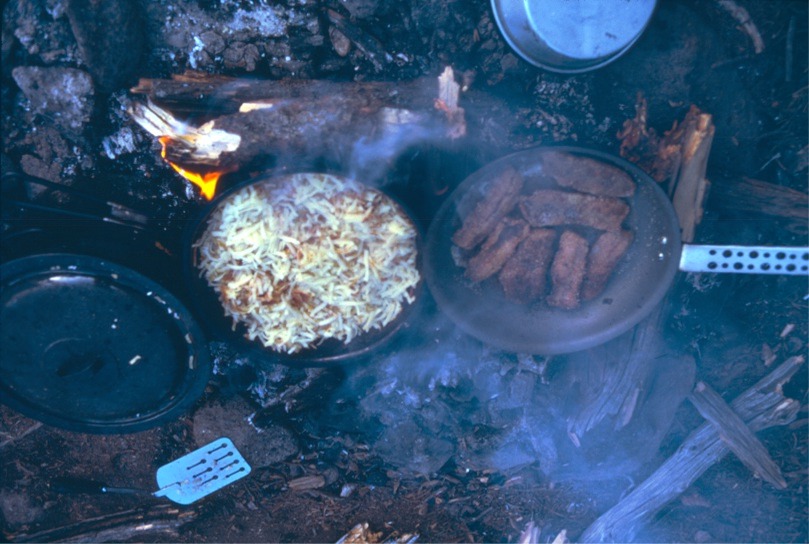 Dinner time: fish, bacon and hashbrowns