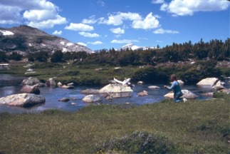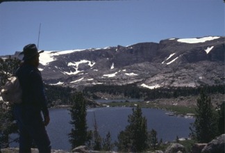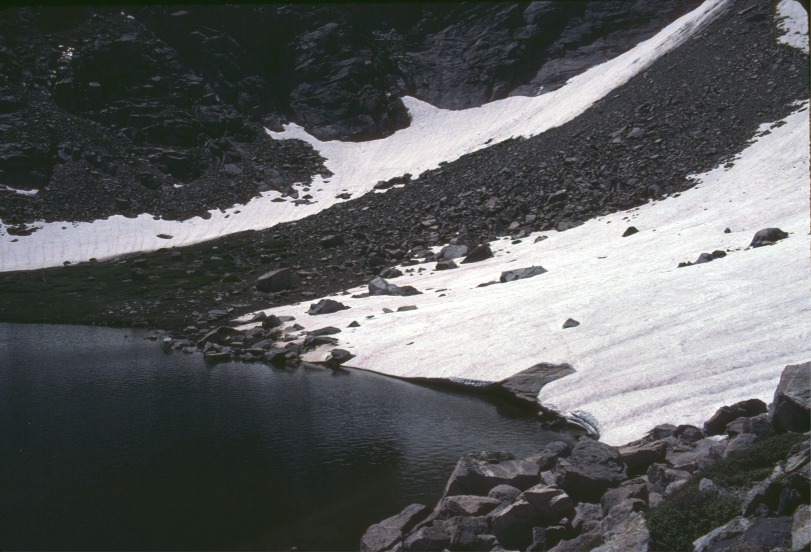 Snow bank above Upper Toadstool lake. Click the photo to see Paul and Robbie sliding down it