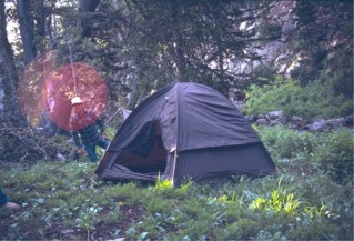 Virg and my tent, with Paul and Robbie's just visible between our tent and Robbie